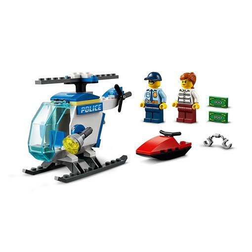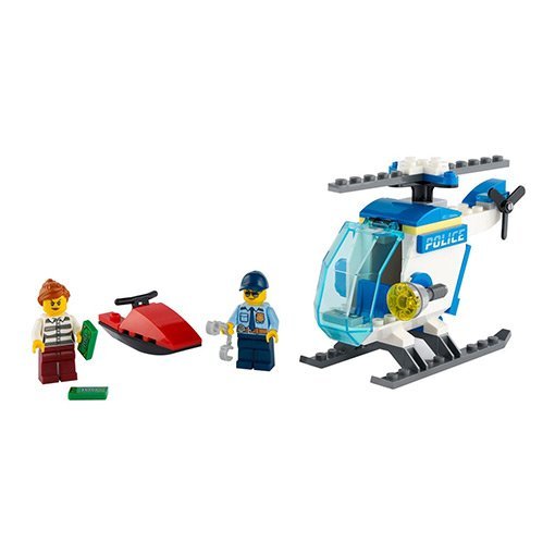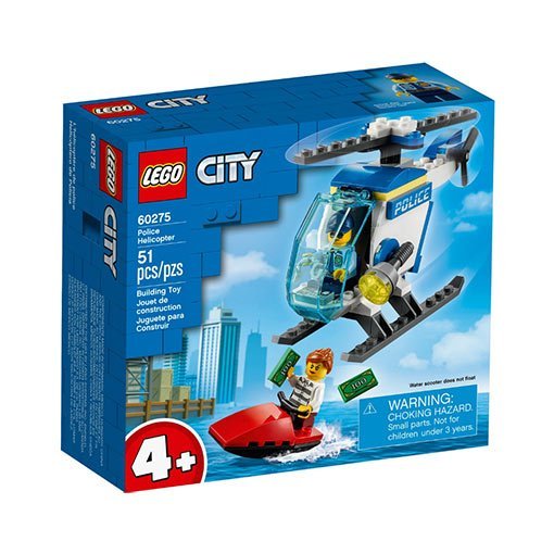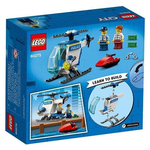 Lego Politiehelikopter Set 60275 is echt een geweldige set om te bouwen. Met een vleugje fantasie vlieg je met de helicopter over het water achter de boef op de waterscooter aan! Spannend! Het briefgeld vliegt door het rond als de dief probeert te ontsnappen.